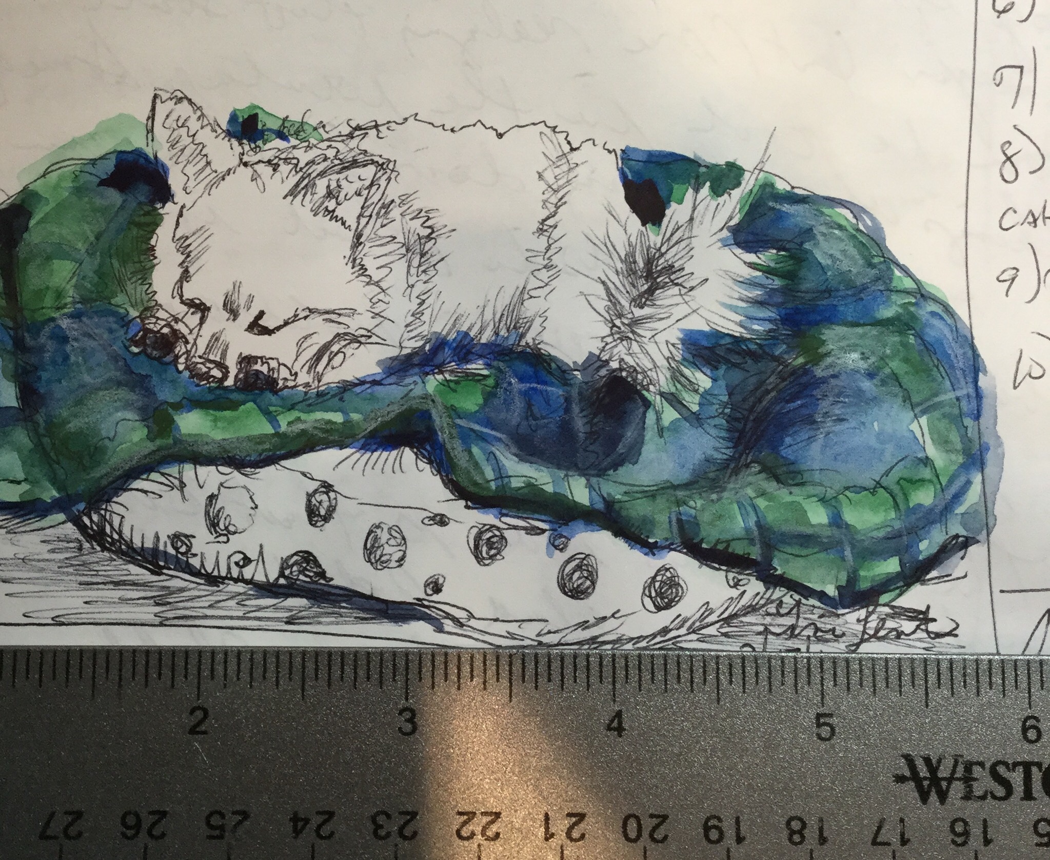 I watched the video and though to myself, “Oh, I am not going to want to do this.” Then I forced myself to do it using a sketch I did last week of Mack, my Chihuahua.
