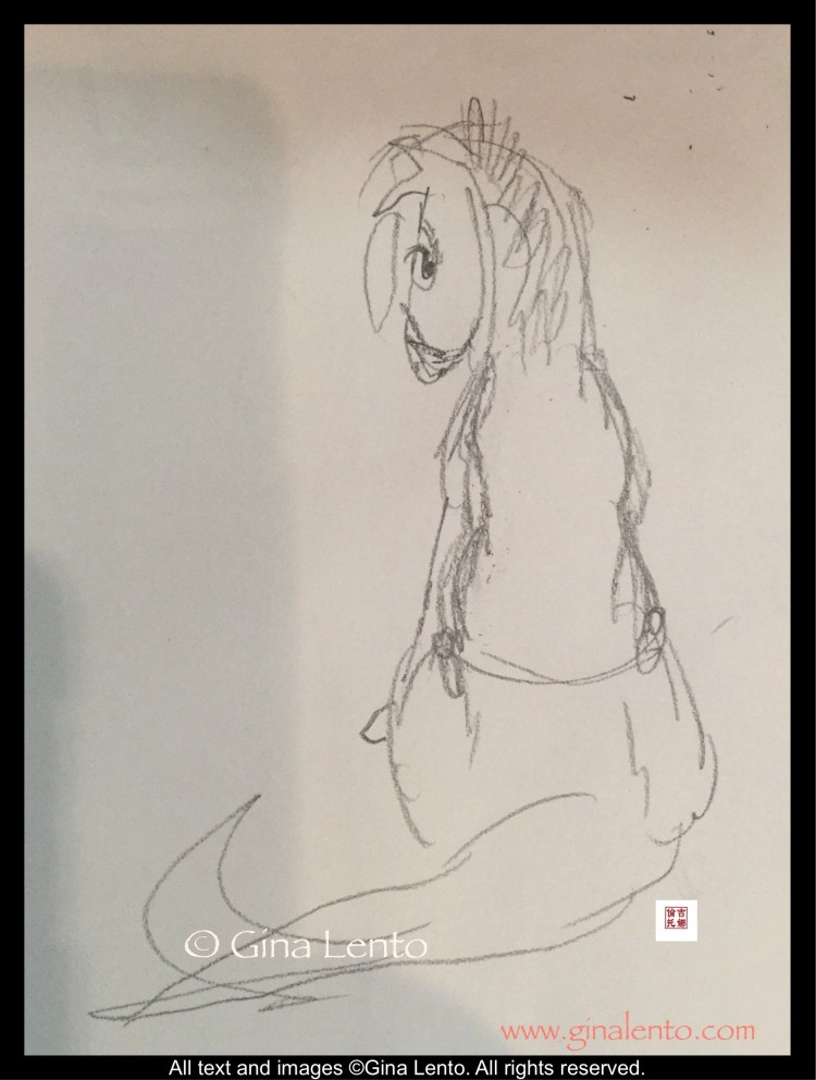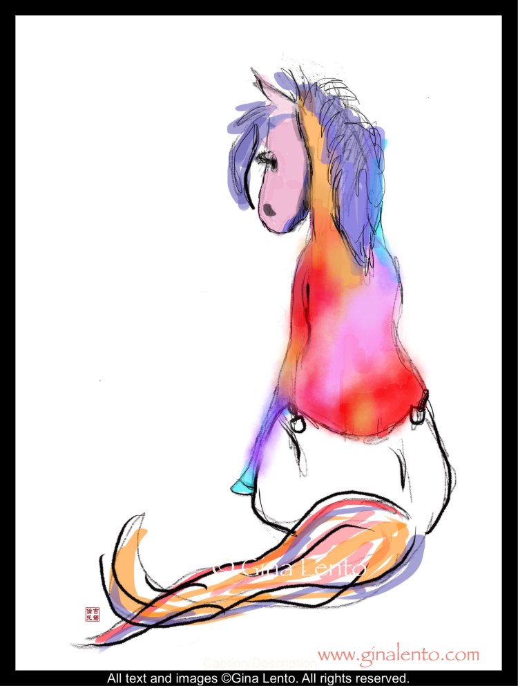 Sometime, I sketch things off the top of my head, and here is one sketch that I did with a baby shower in mind for someone who likes horses. It started with a pencil sketch from my sketchbook, I took a picture of it and created the digital image that you see below.
