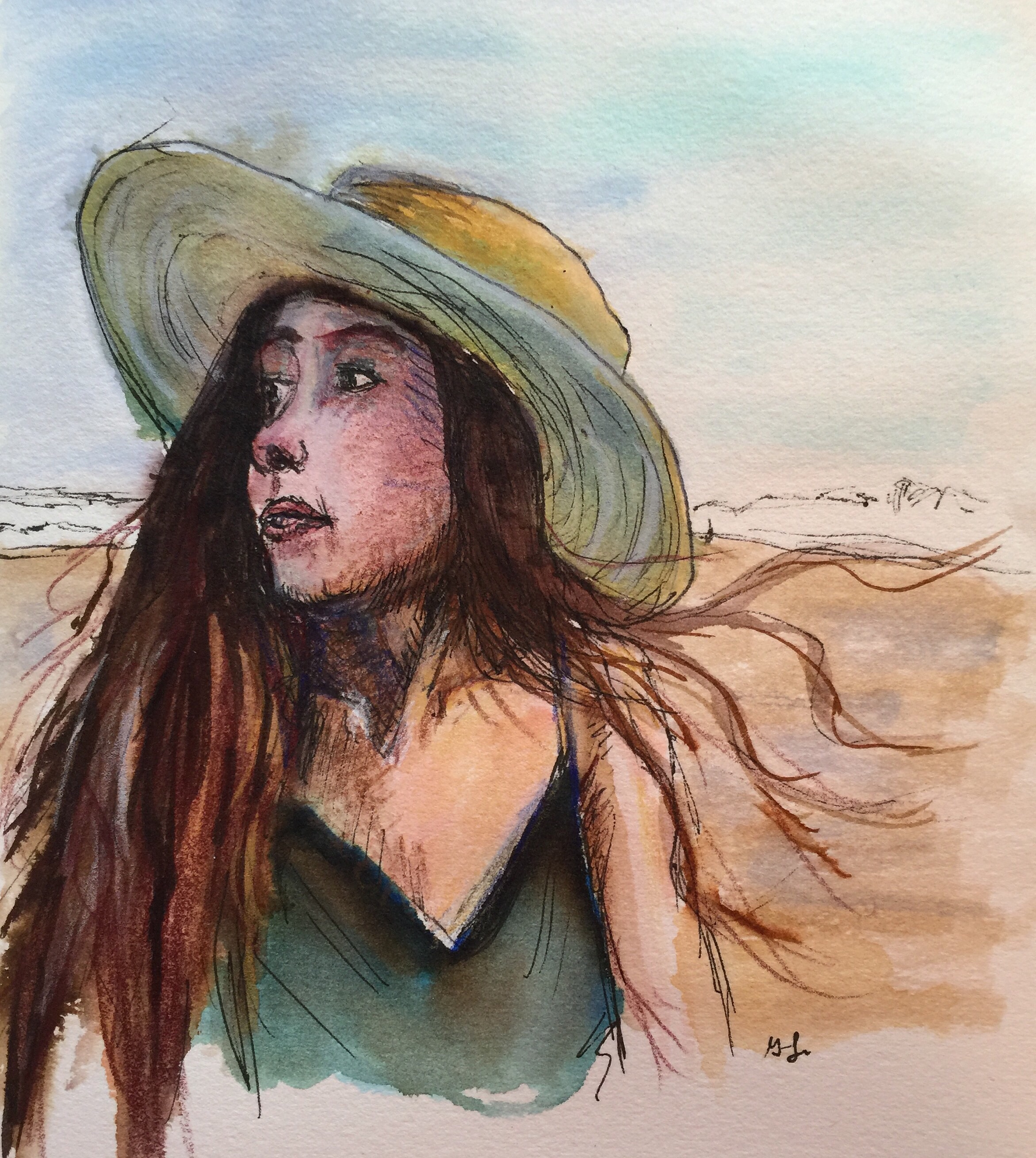I saw the hair blowing in the wind and the sun setting on the side of the hat and had to do this one.