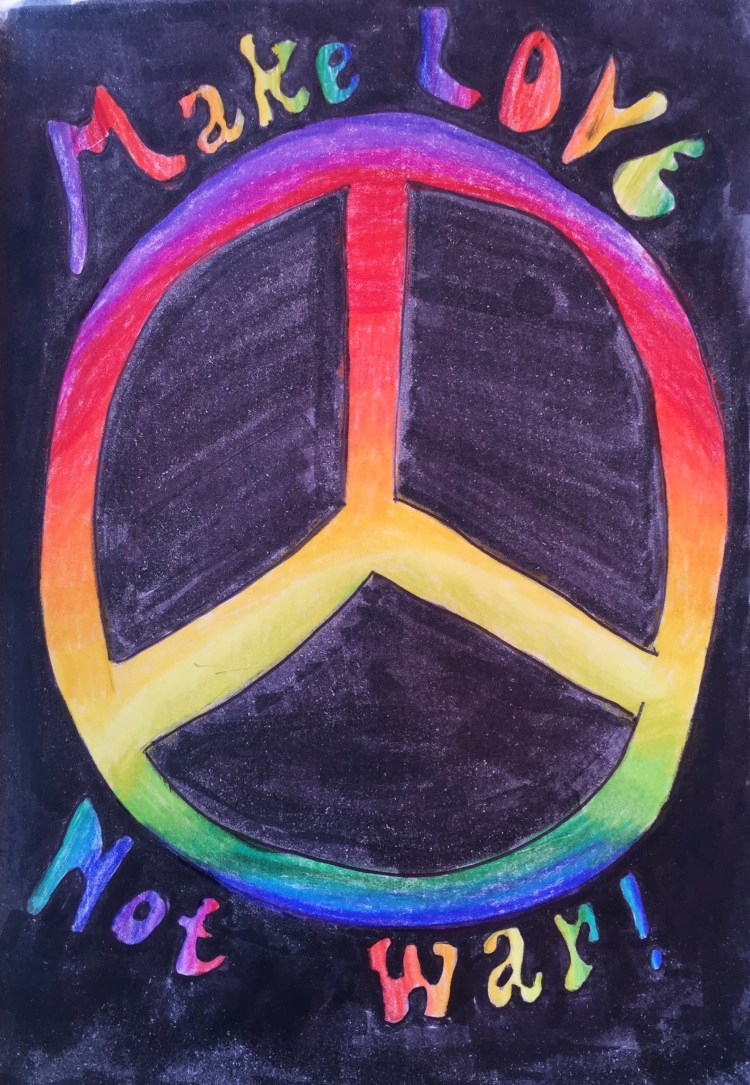 Today I regressed back to an old friend from the ’60’s. I figured “Make Love, Not War” should be an slogan for the entire planet and still has meaning today. We are all beings on the same planet. Stop hurting each other and accept people for who they are.