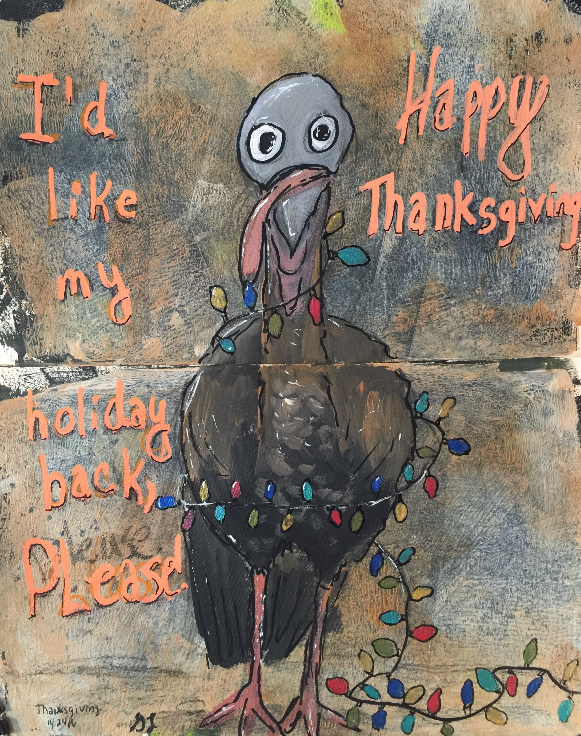 Sorry I am just getting to sending this out. I almost forgot to post this. I did manage to be creative today, spending a few minutes to do this turkey in the studio while roasting the turkey that went on my table.