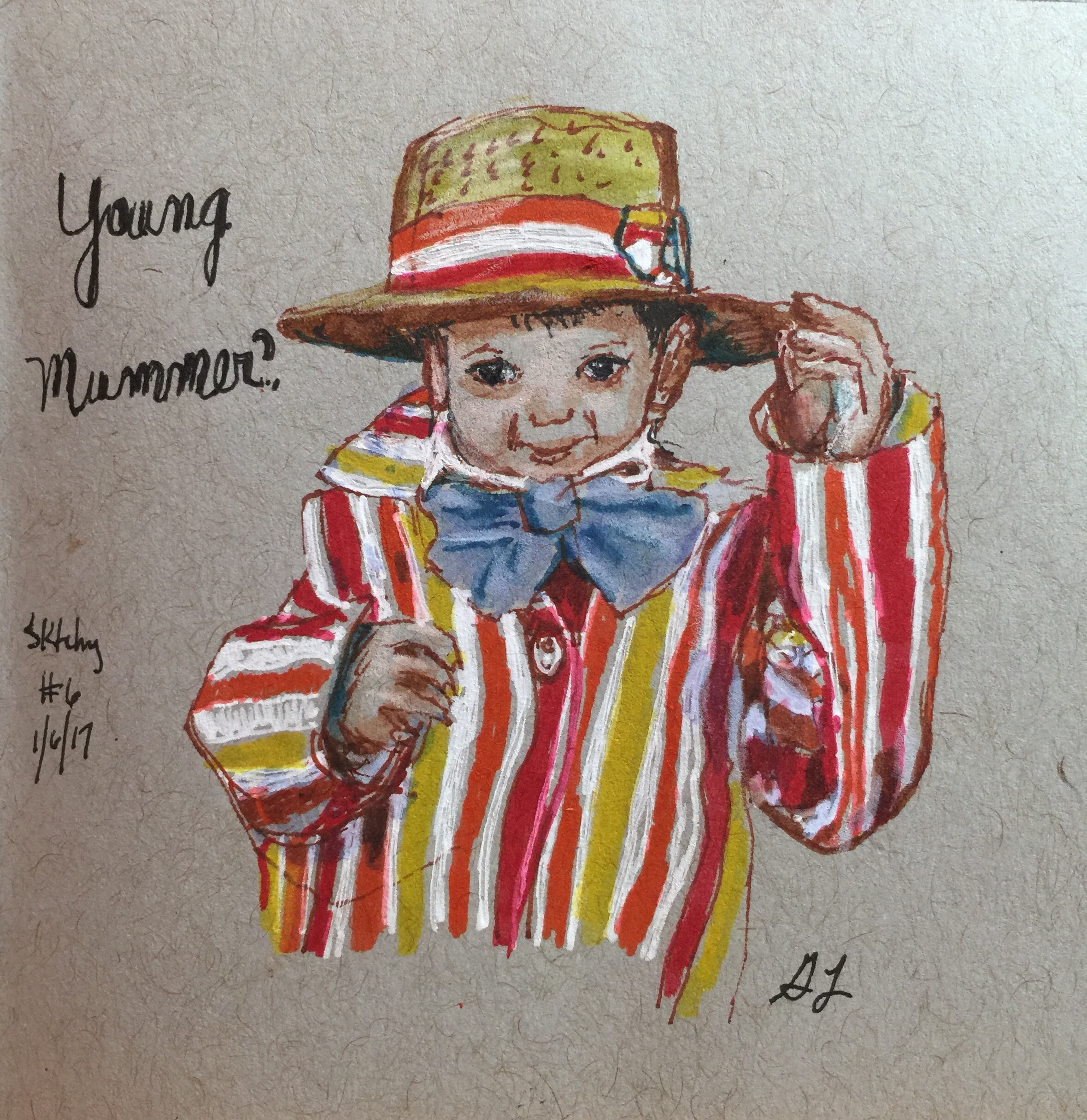 I titled it “Young Mummer in training?” I am not sure what event this young man is dressed up for but I am going to guess and say the Mummers Parade.