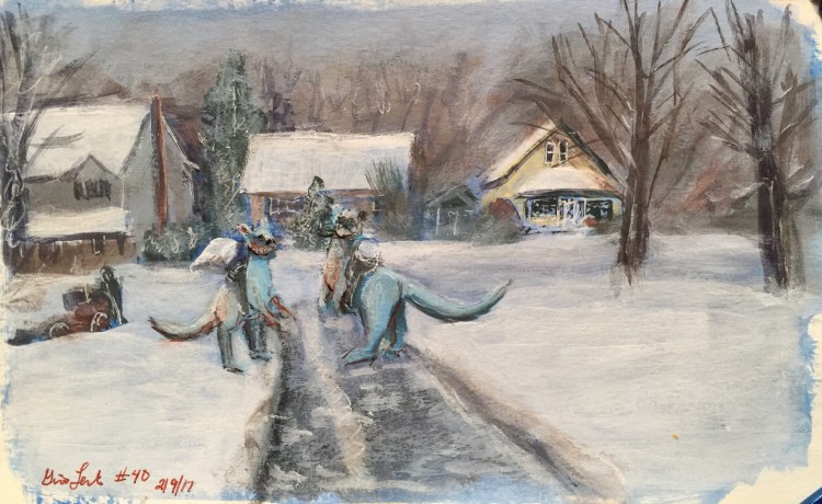 This is the view out of my studio window….I kinda took a little creative license…it’s a little loose….I was just having a little fun….the book is 5 x 8 1/2 in so it’s kinda tough to really tweak the details on the tauntaun, but you get the idea.