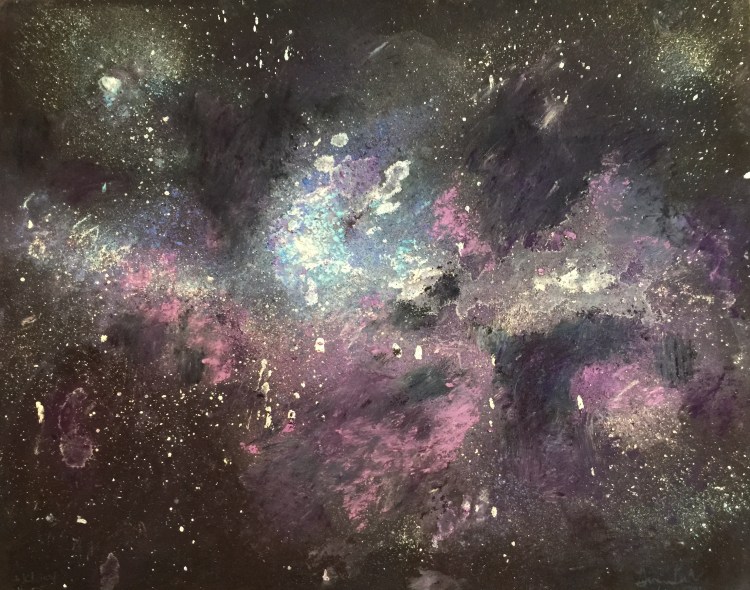 The weekend challenge for Sktchy this weekend is “space.” I was going to do the moon until I found a photo of outer space….it was black and white so I took a few liberties by adding color.