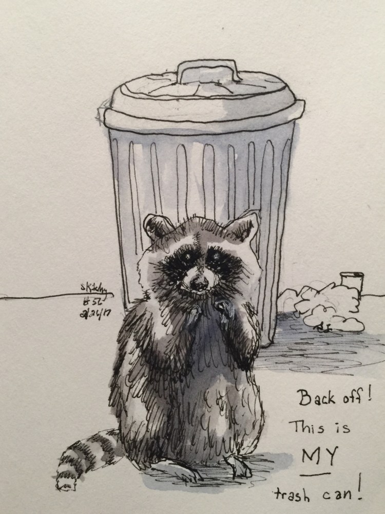 Anyway, I did this a little while ago. I saw this reference photo of a raccoon on someone’s steps and thought his stance was more suited to defending his stash….