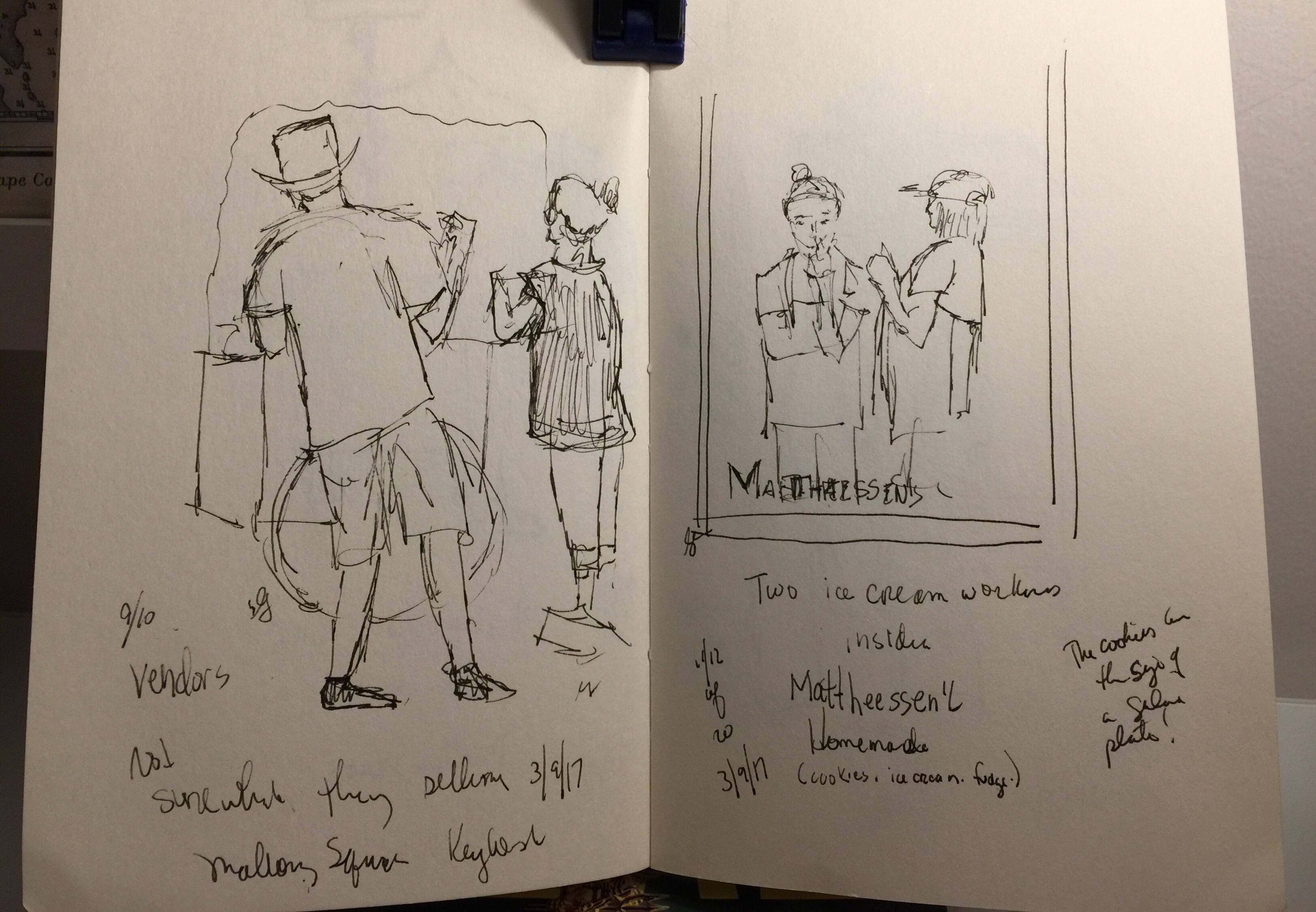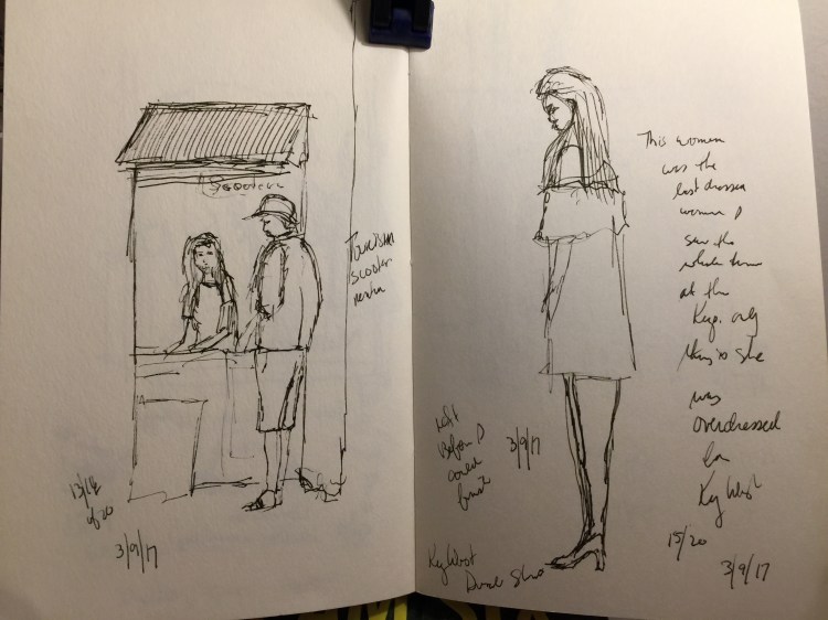 While doing the sketch on the left, some guy came, totally drunk, and sat down with us. Proceeded to tell us his whole life story….I quickly finished the sketch so we could politely leave. He was harmless but he kept saying things as people walked passed so we beat a hasty retreat.