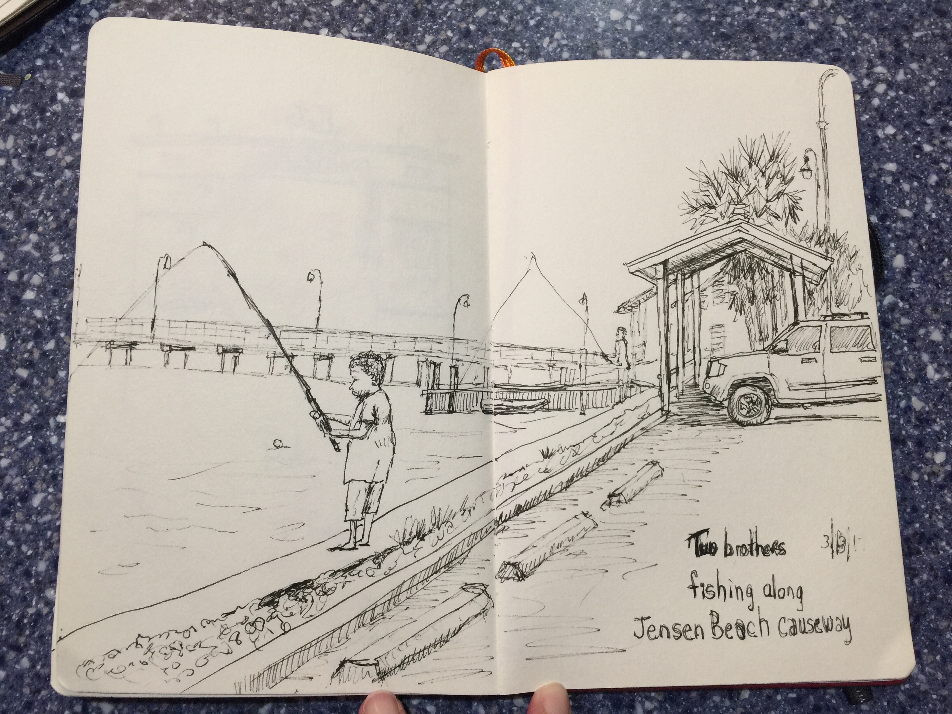 Here is my sketch done at the causeway….my pen ran out of ink just as I was writing the date….good thing I brought the bottle with me to refill it!