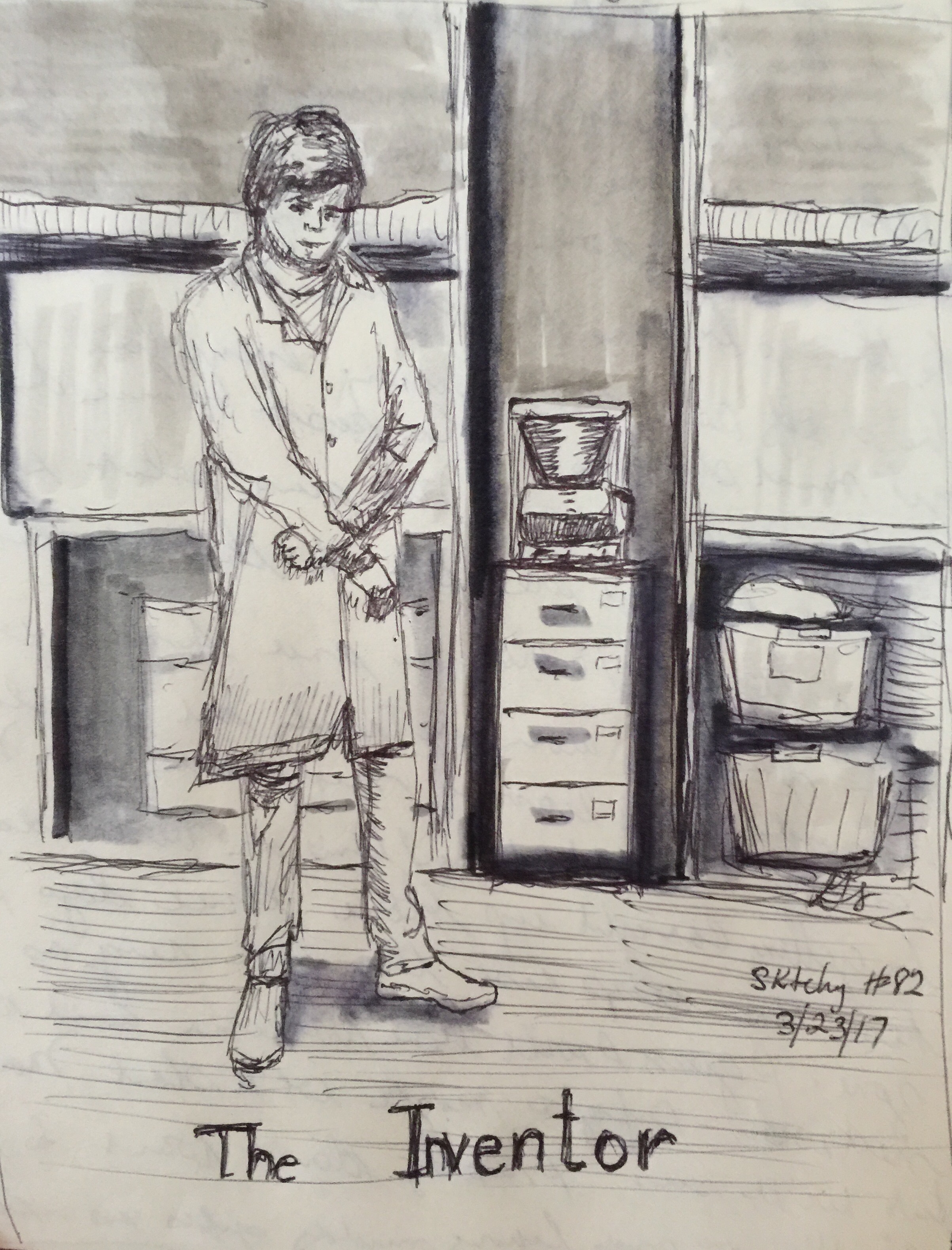 The sketch is humorously called “The Inventor”
