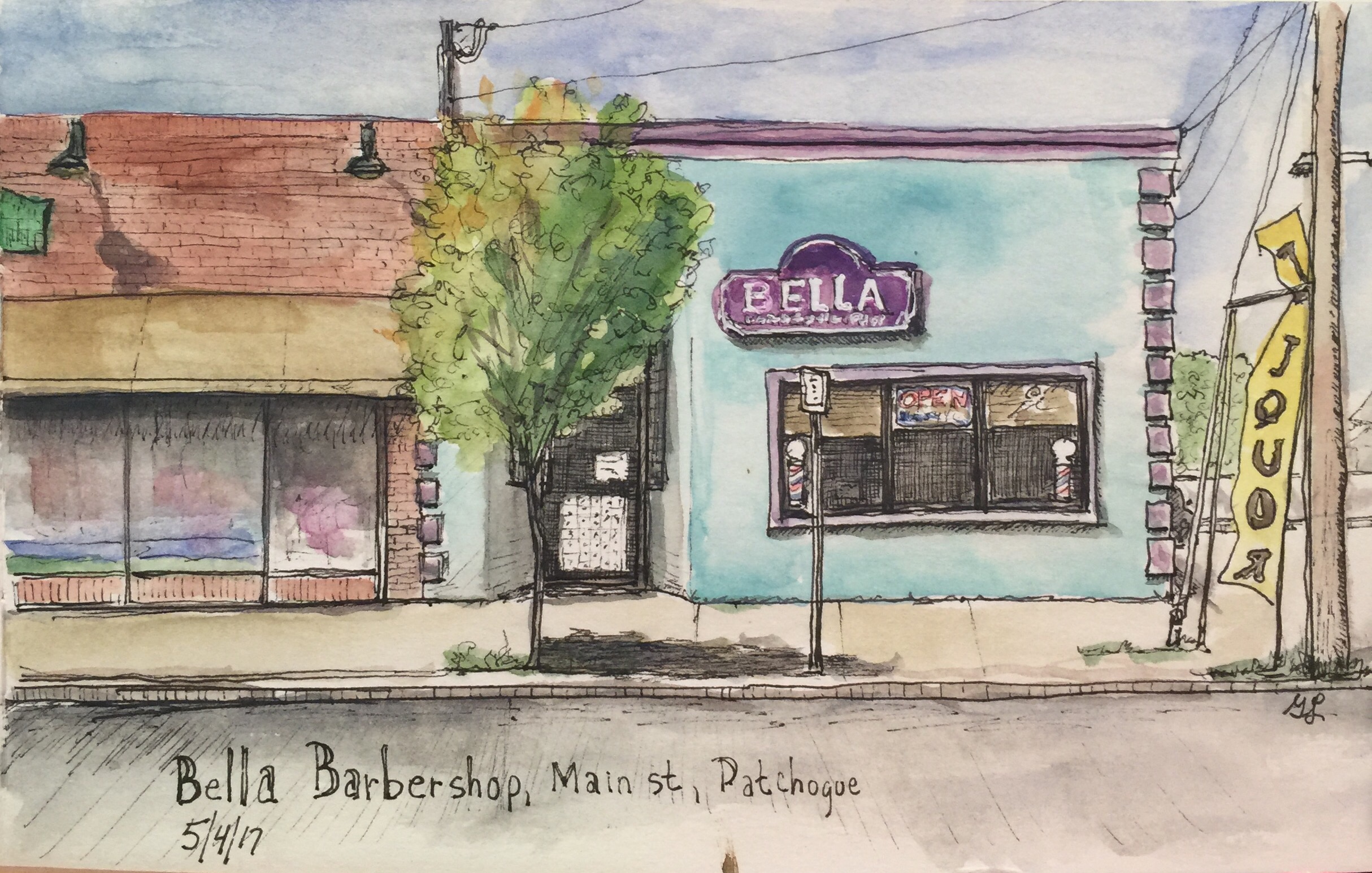 It was an easy sketch to do. I brought it home and my husband looked at it. He was telling me how it used to be a bar. Now it is a barbershop…progress?
