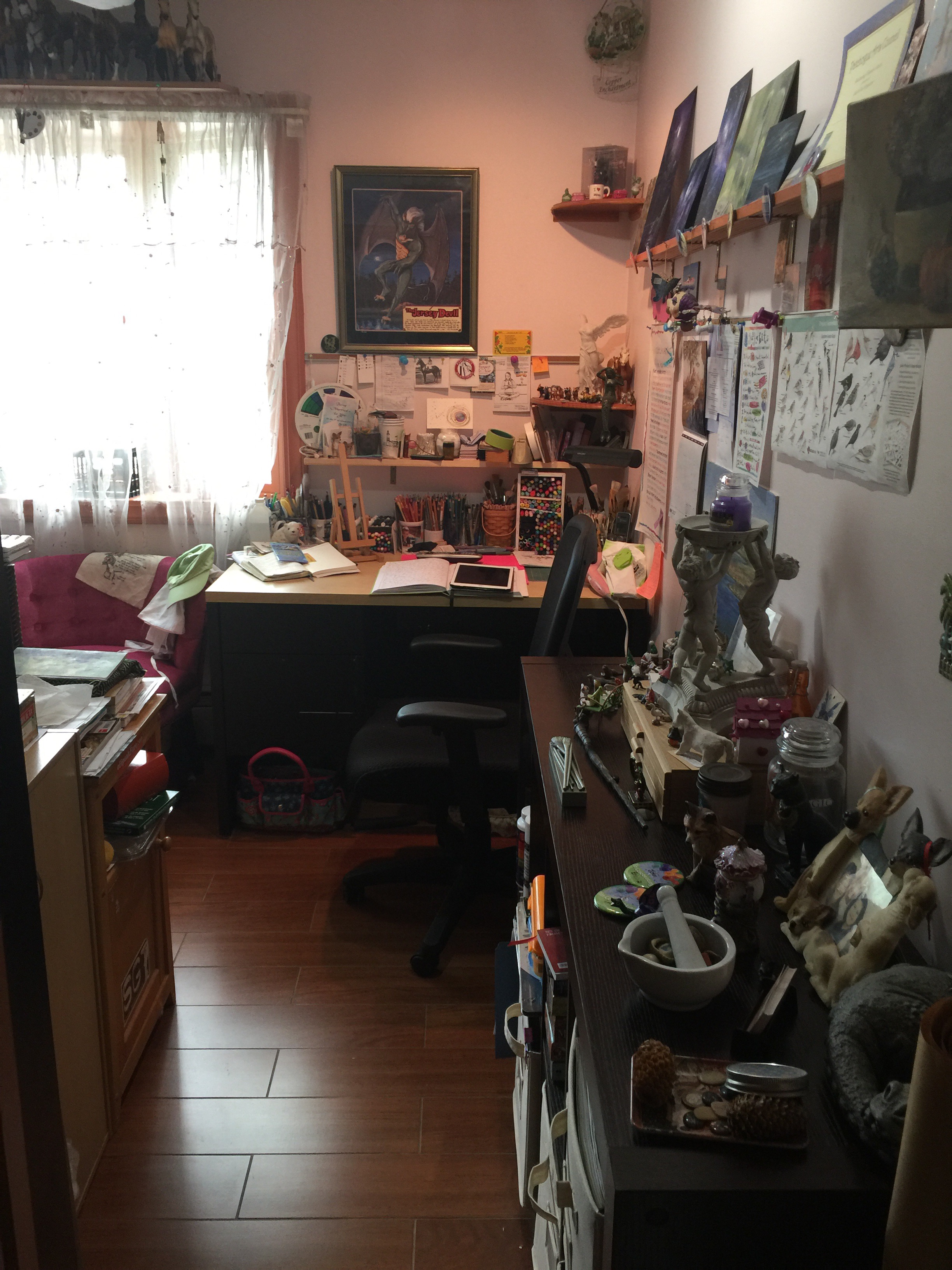 Welcome…as you walk through the door the first thing you see is my desk….that’s the Jersey Devil done by Rik Viola, a fellow artist.