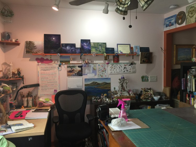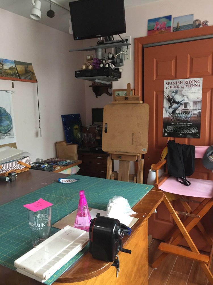 First, some of you may be curious about an artist’s studio. I have a small studio. I wish it was larger but I am just happy that I have one….