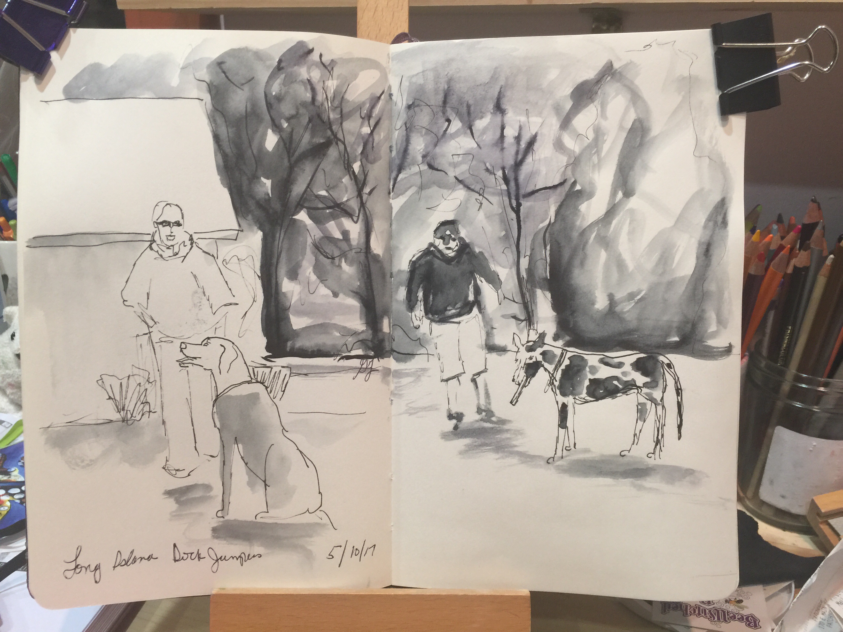 Tonight’s sketches, the Long Island Dock Jumpers were out practicing….