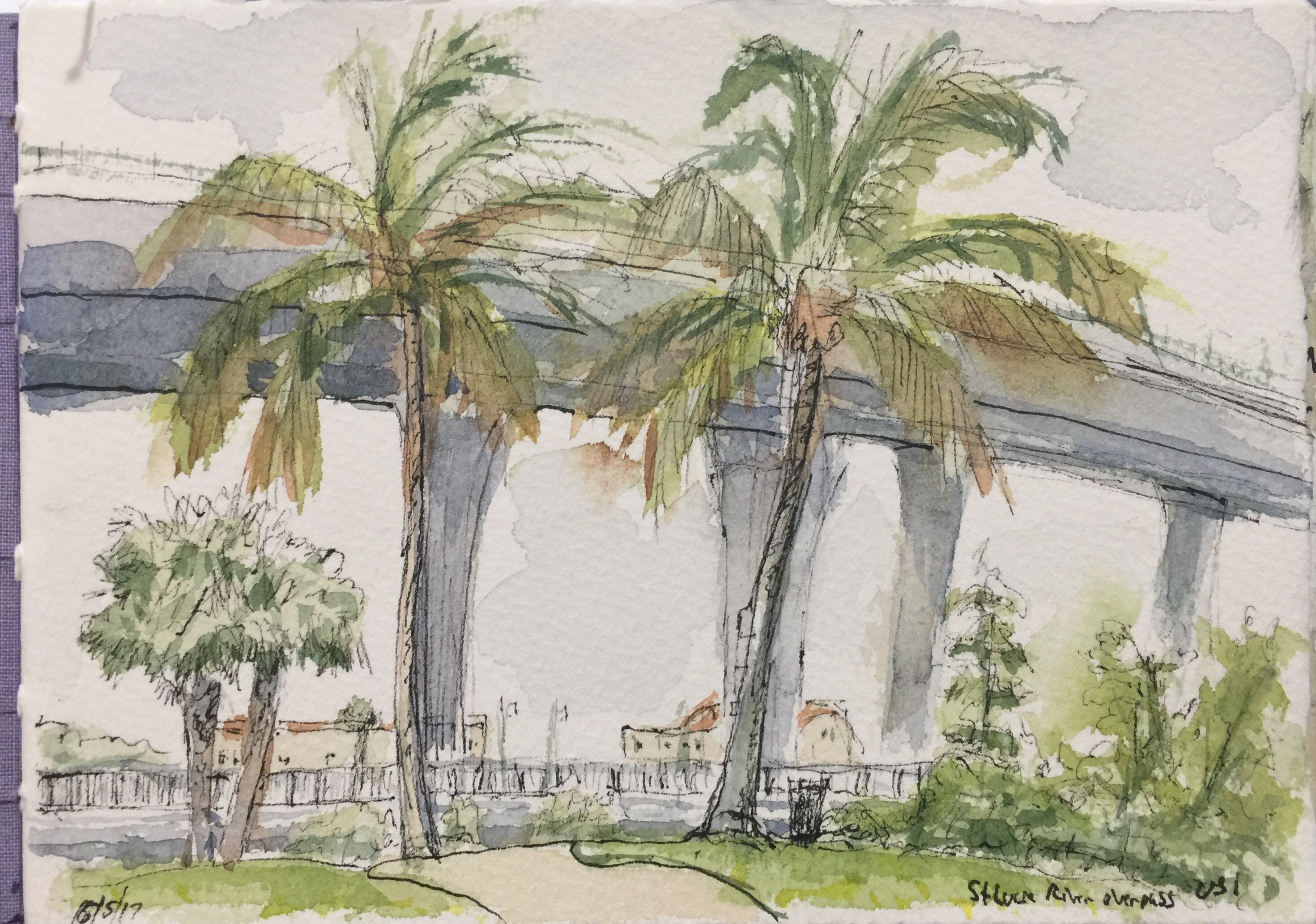 This sketch was done at the river front park in Downtown Stuart….I was facing the US 1 bridge that goes over the St Lucie river…
