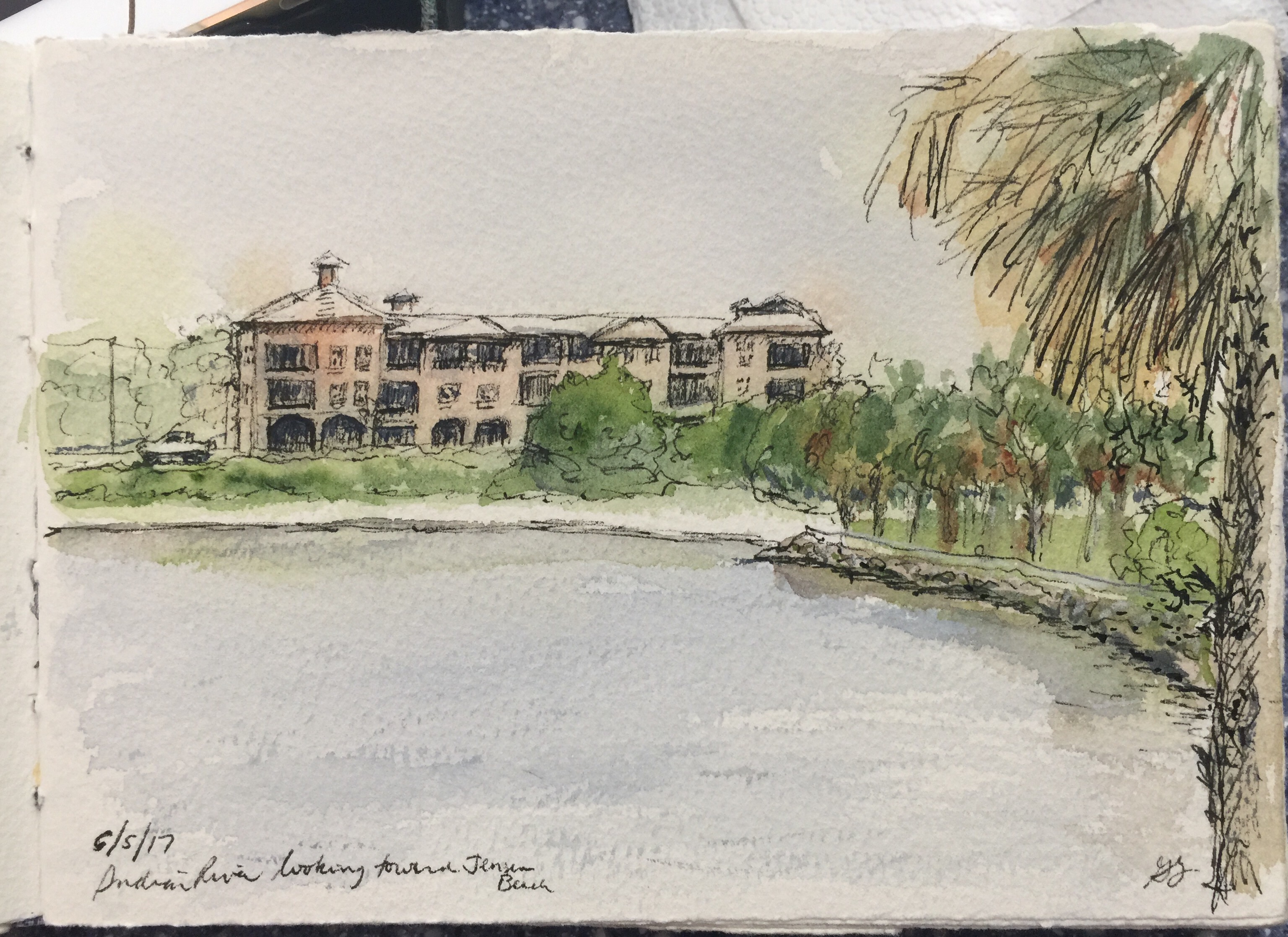 This sketch was done from the side of the bridge, looking back towards the shoreline.