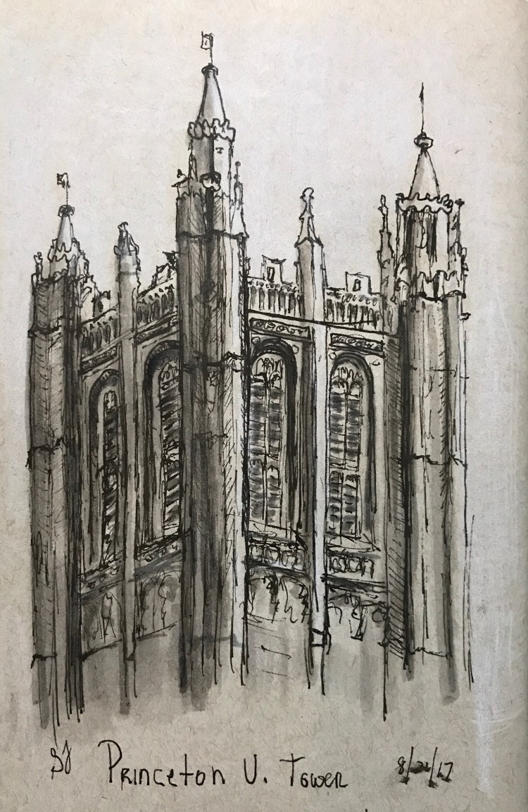 Sketched this in Princeton today. I didn’t expect a crowd today but people seemed to be congregating from all over to watch the eclipse. I thought the kids were back to school until I found out that Princeton doesn’t start until September. Some very nice people let me view the eclipse through their glasses. It was pretty cool.