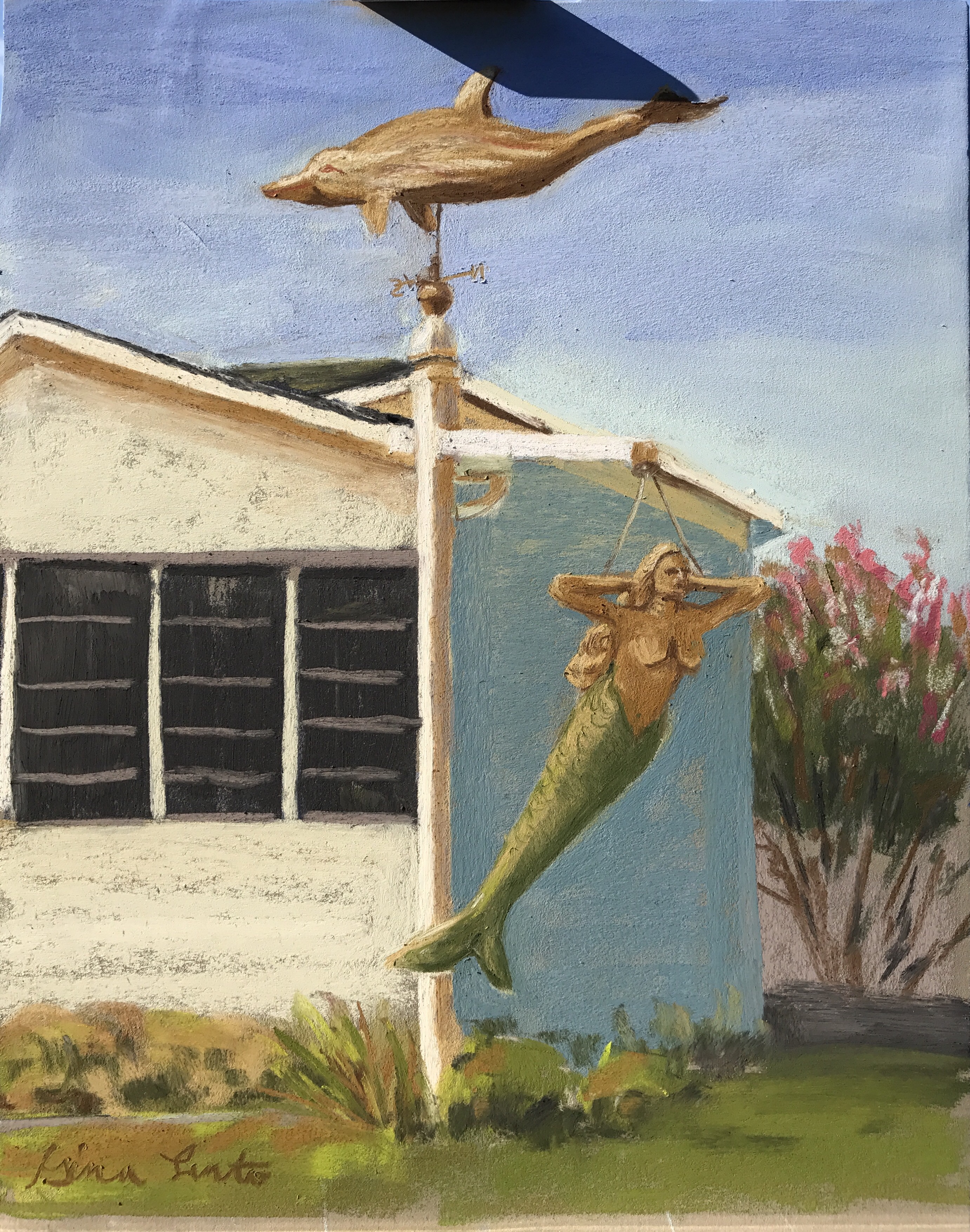 Yesterday I passed a house that had a bunch of mermaids in the yard…..I went back there early this morning and painted the mermaid in the lifeguard chair, then I painted the hanging mermaid this afternoon. Both of these will be available for sale tomorrow evening.