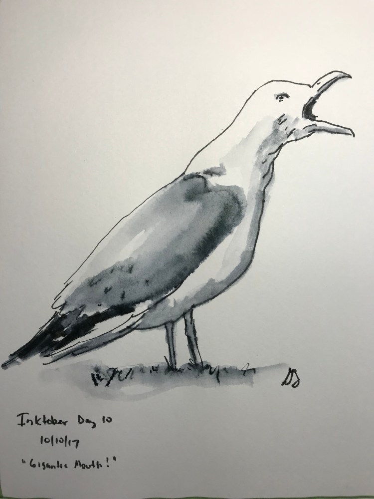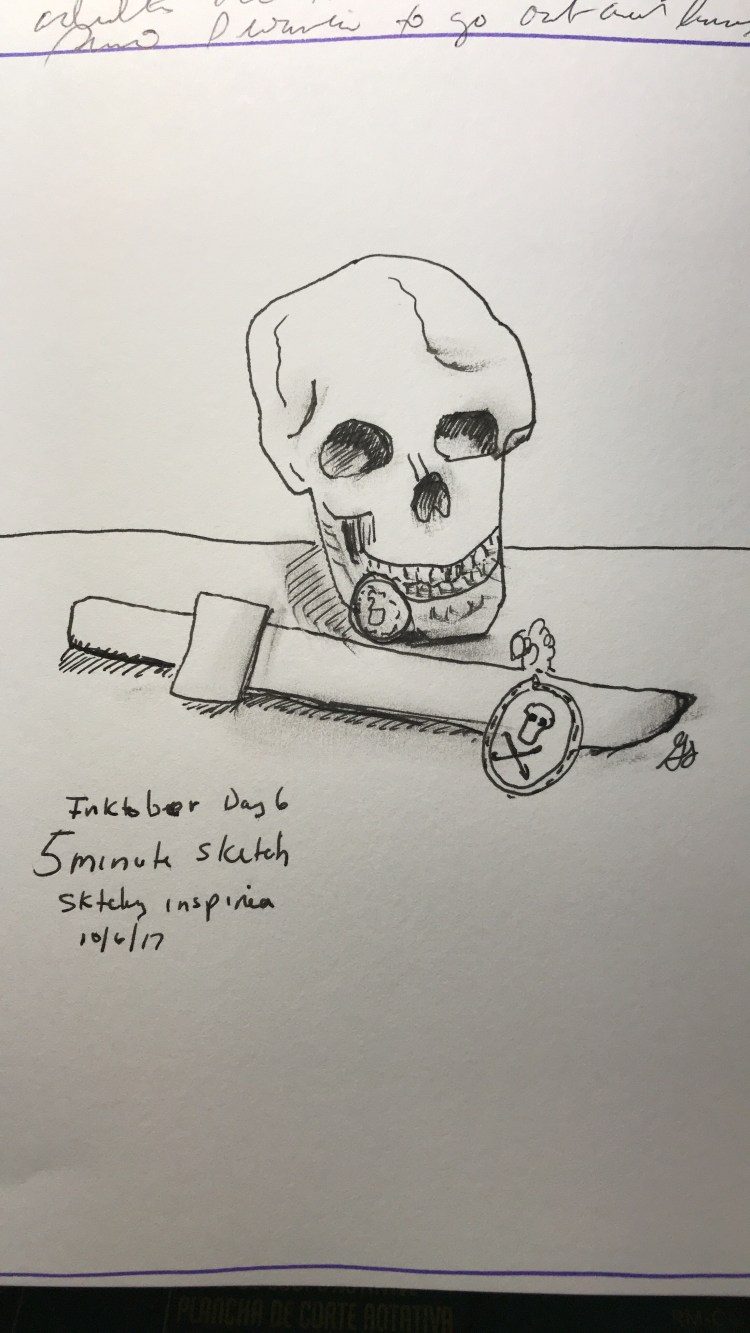 My own personal Inktober challenge has been to add a five-minute, timed sketch to my morning routine. This way, no matter how the day goes, I still did one sketch. It helps break artist’s block for me, and I would recommend the five-minute exercise to anyone looking to establish a daily creative habit. It is one baby step in the right direction and anyone can do it. It forces me to not be so hung up on Perfectionism, which can be a form of procrastination and avoidance, and just sketching for five minutes can make all the difference with skills and creating quick art.