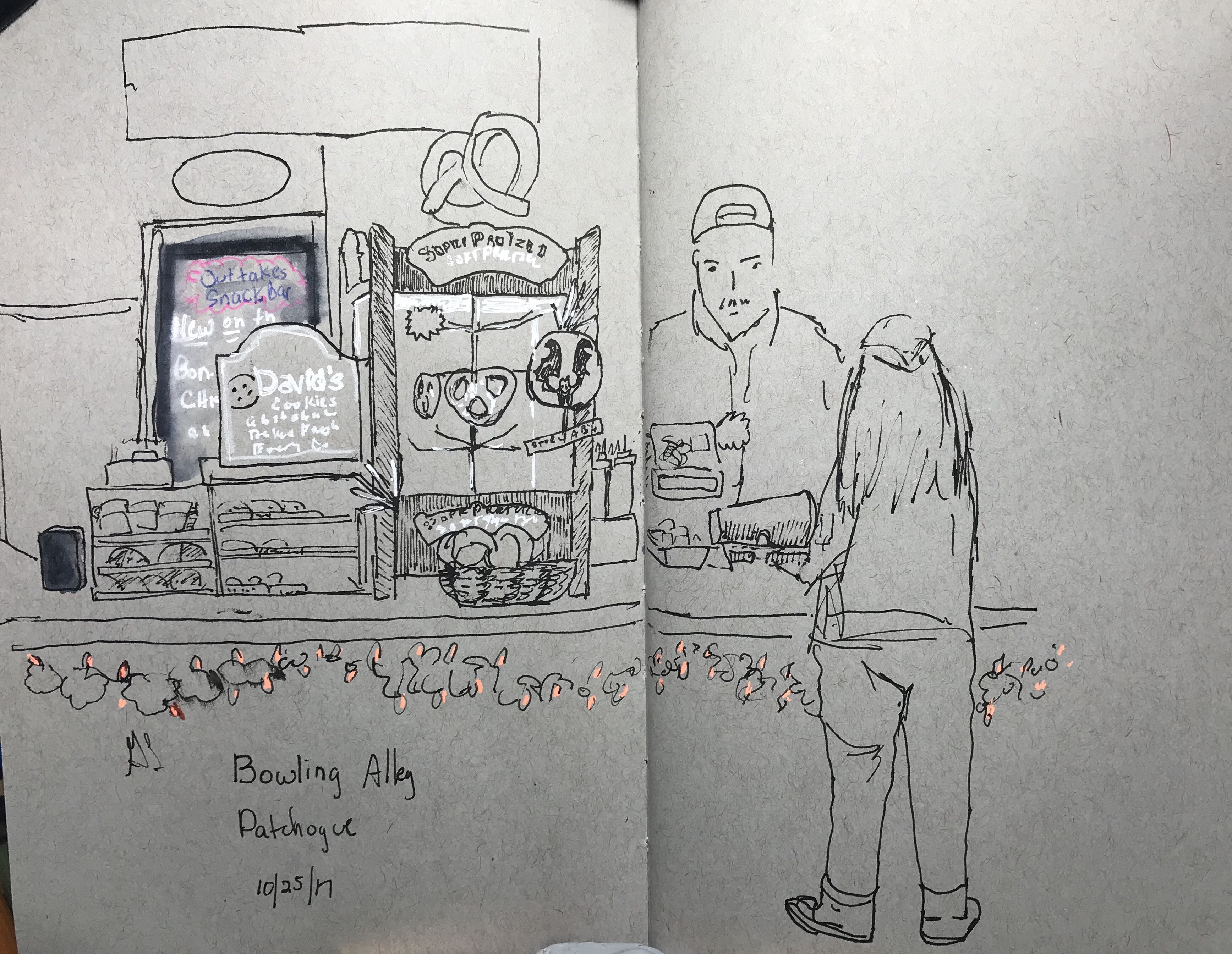 This past Wednesday I went out with my sketch club to sketch at the local bowling alley.