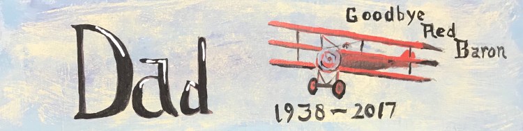 Yesterday evening, I went to the library to do a community art project called Celebrate, Honor, Remember. The library staff has pieces of wood that they encourage people to paint a memorial plaque for a departed loved one, including pets. If you read the post from this past summer about my dad passing away, you’ll understand why I did the Red Baron on my dad’s plaque.