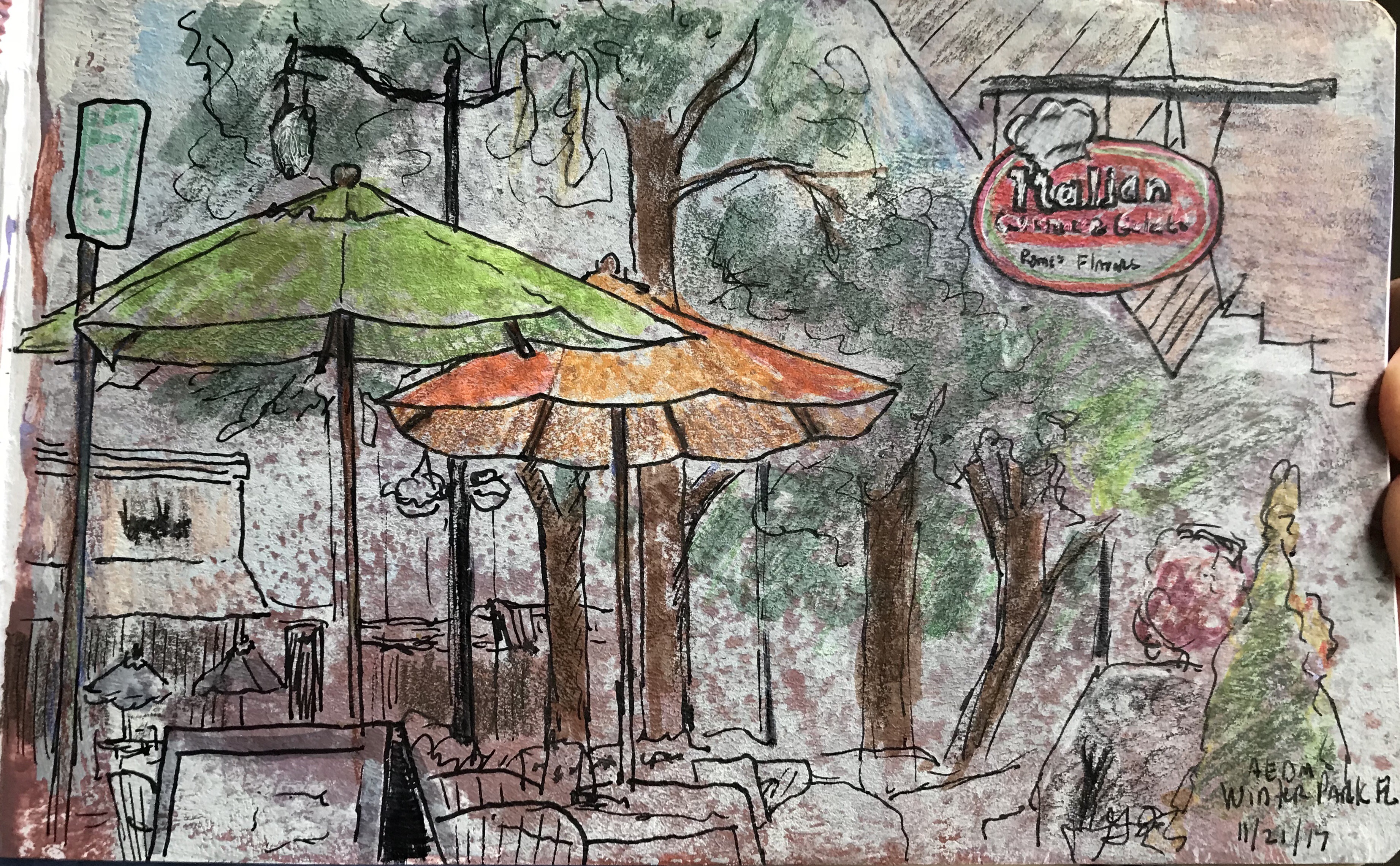 Hubby and I took a day trip to Winter Park, Fl. It’s a pretty place. I like Stuart better but it was a nice place to sit and have coffee and sketch for a bit.