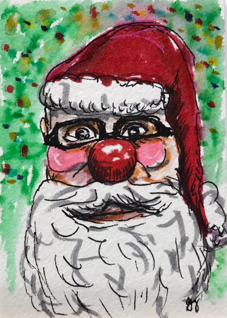 There are multiple submissions on Sktchy of clowns, especially since clowns are thought of as being sinister, thanks to Stephen King. I sketched this clown and turned him into something benign, a clown Santa.