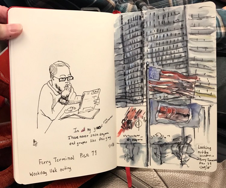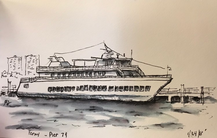 I was in the city today sketching with the NYC Urban Sketchers. We sketched at the NY Waterway Ferry terminal.