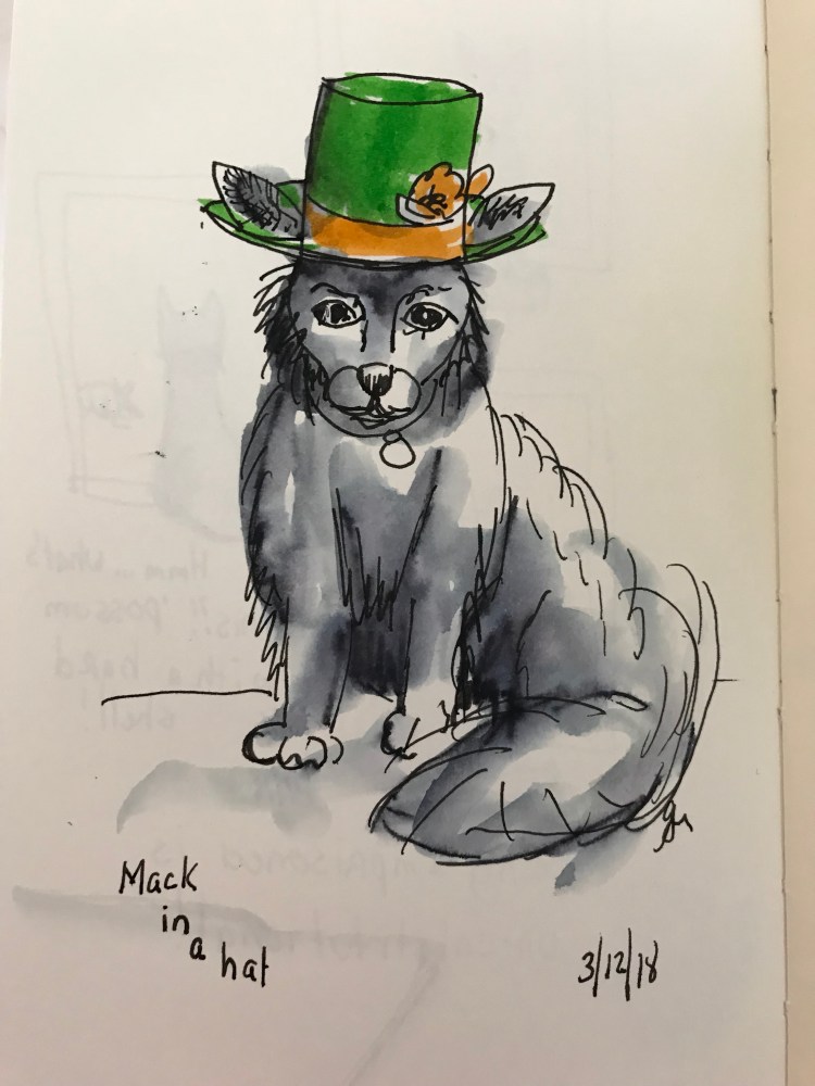 Here is a quick Tombow sketch and I updated Mack’s hat from the previous sketch to add green.
