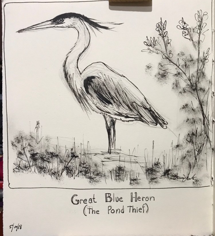 The Heron was an exercise from Sketchbook Survival where we used a brush instead of a pen to sketch out the heron and I will be trying this technique more often, when I am out sketching.