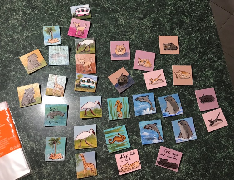 These magnets are small but I tried to make them tiny art that people can enjoy at their desks or on their refrigerator.