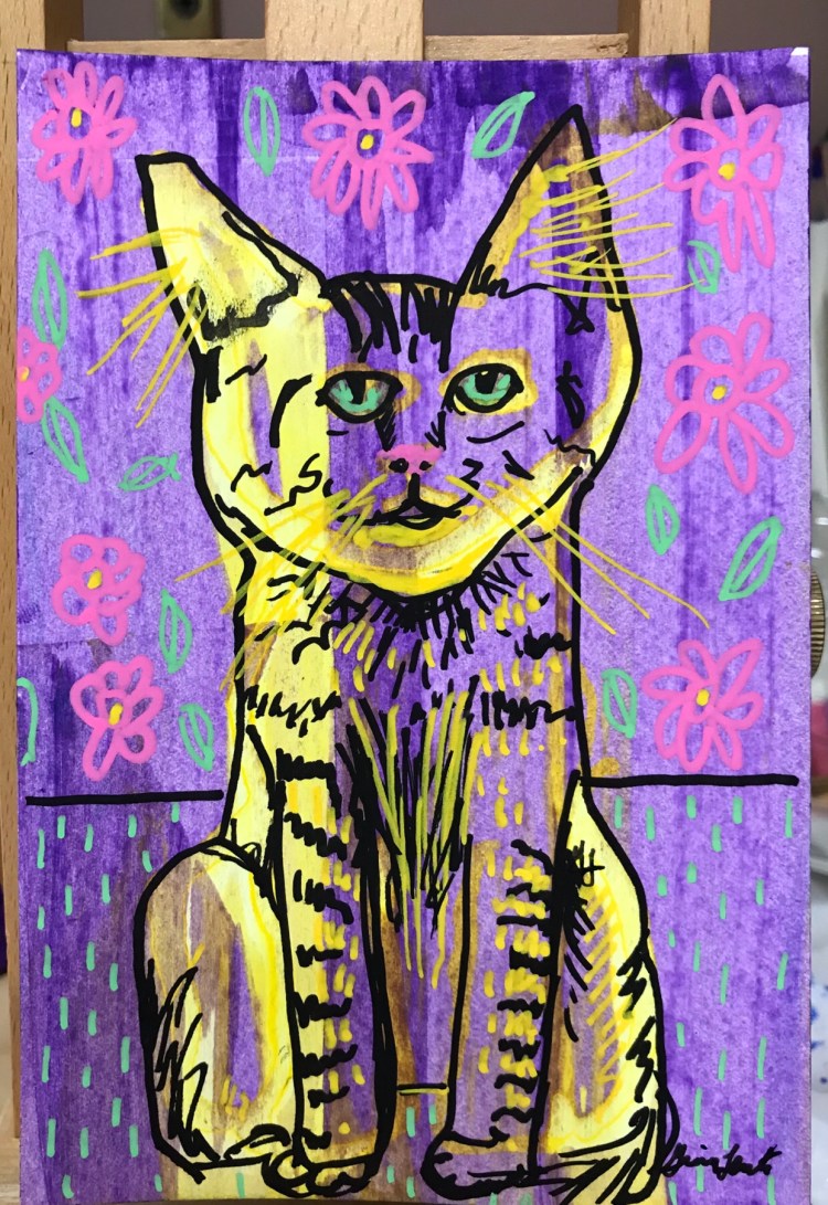 Another mixed media kitty. I made a bunch of “starts” so I can just randomly pull from a pile and do what ever comes to my head.