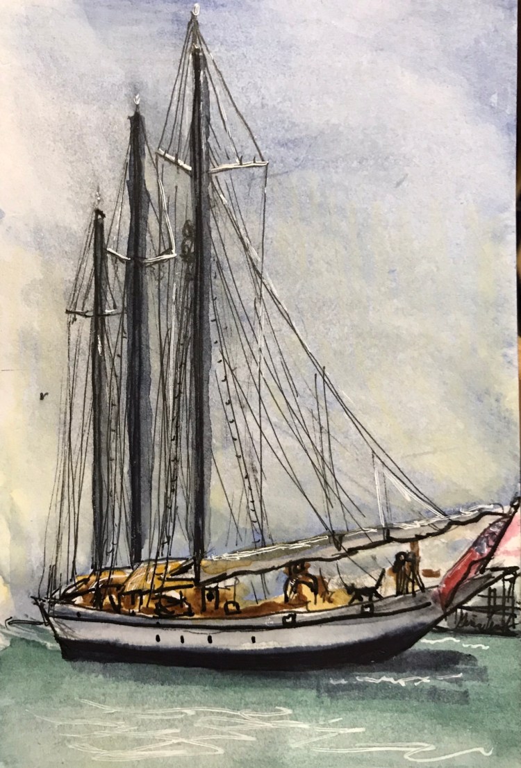 We went out to Greenport and saw this huge sailboat. Kitty wanted to go sailing on it…..