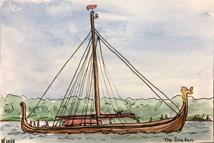 The Draken, a reproduced genuine Viking ship, visited Long Island last week and we were there by chance, watching it come into the dock.