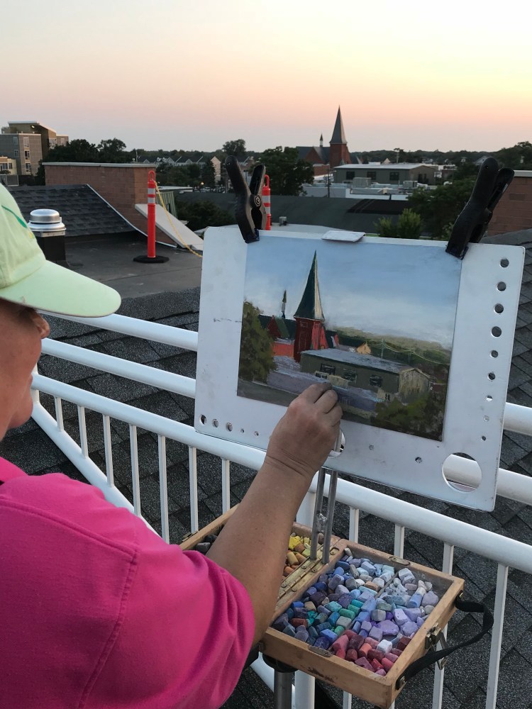 This evening, for Paint the Great South Bay, we were given access to a rooftop so we could paint. It was awesome and we had a whole new view to paint.