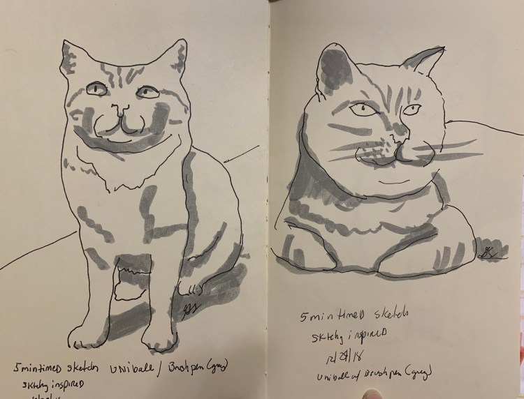 My husband and I are taking a holiday break, so I will be posting cat sketches for a few days.