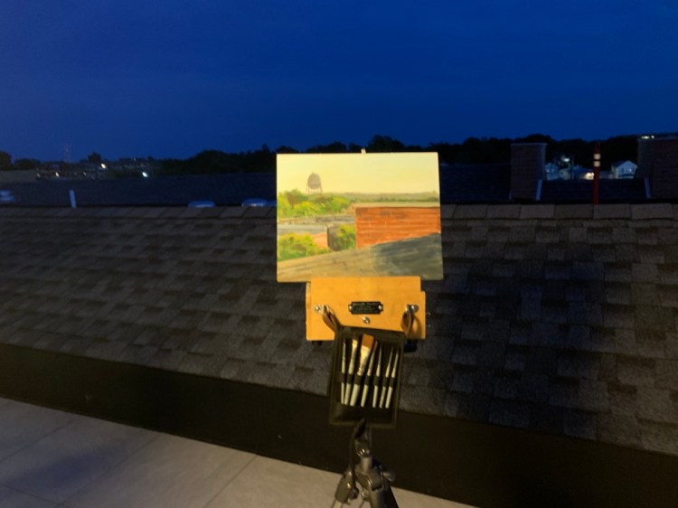 As typical with plein air, there are adventures to tell. Several storms this week, one really was a humdinger.