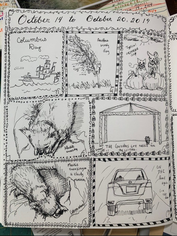 Here is my daily one-box-per-day spread for Inktober Week 3.
