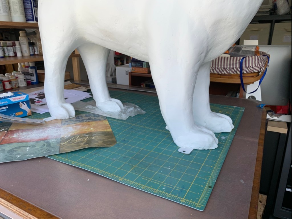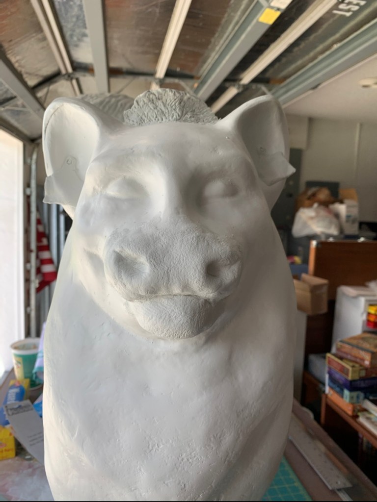 I tweaked my original design by sculpting the entire cat instead of adding props like a leather collar, because I need to make the cow vandal proof. I also want the finished piece to still reflect the cat underneath so I am adding to the cat without taking the personality away.