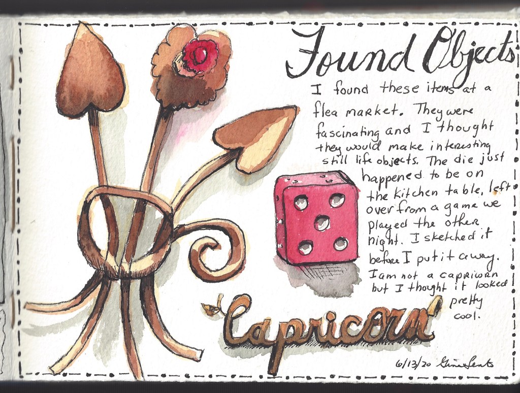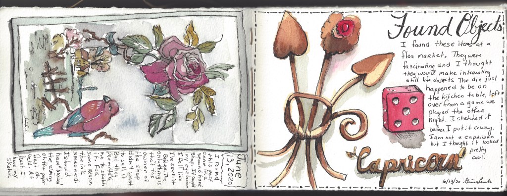 I found that making up stories about objects is fun….Here is a close up of one page and the full spread.