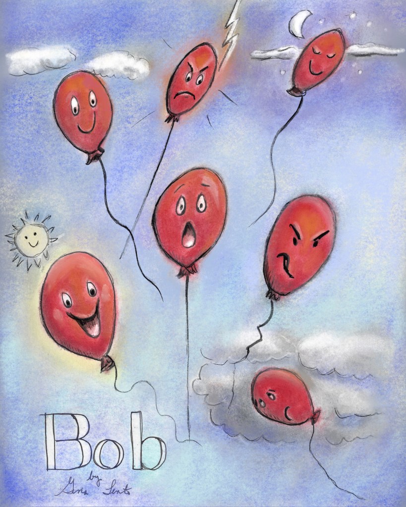 Folks, I am working on putting a portfolio together and I am taking an illustrator’s workshop. My assignment this week is to take the character in the story and draw up a sheet with expressions for one of the characters. My character is a balloon named Bob.