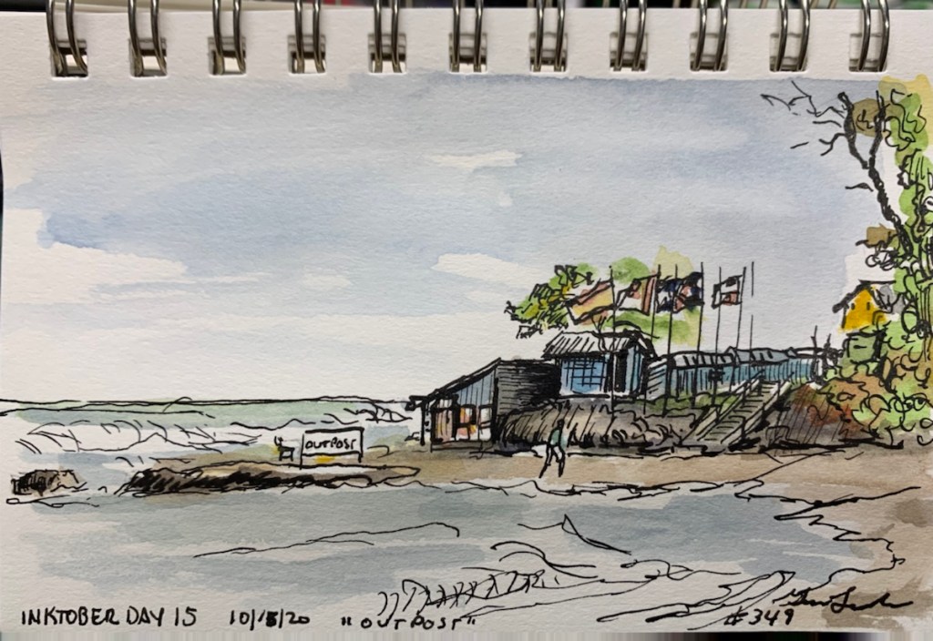 The dragonet is still pissed that he had to wear armor yesterday. He flew off to parts unknown so he wouldn’t have to pose for anything today. The prompt is “outpost” anyway. I had to wing it without him.