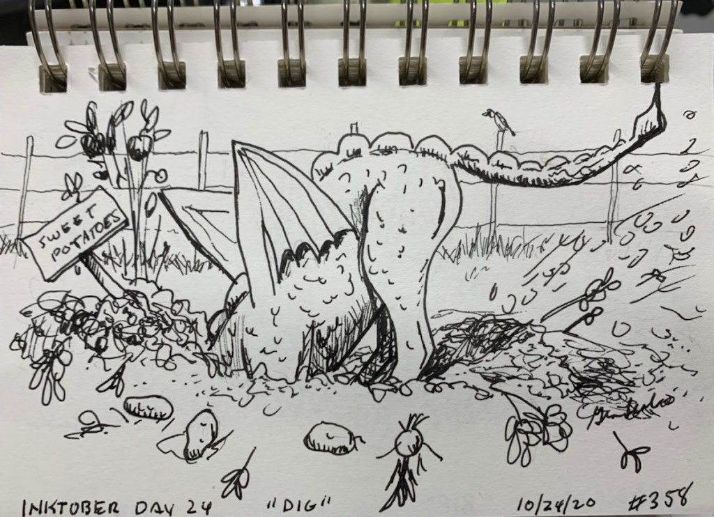 Someone is very helpful in the garden, especially when his favorite treat, sweet potatoes, are ready to be harvested.