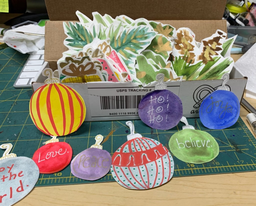 For the past few days I have been working on holiday stuff. I forgot to post yesterday but creating can be intense work. I was thinking on making some cards this year instead of printing them even though I have had my design done since the beginning of the year. We’ll see. I may cut back on how many I mail out. However, I have been making all these “parts.” I may even sell some.