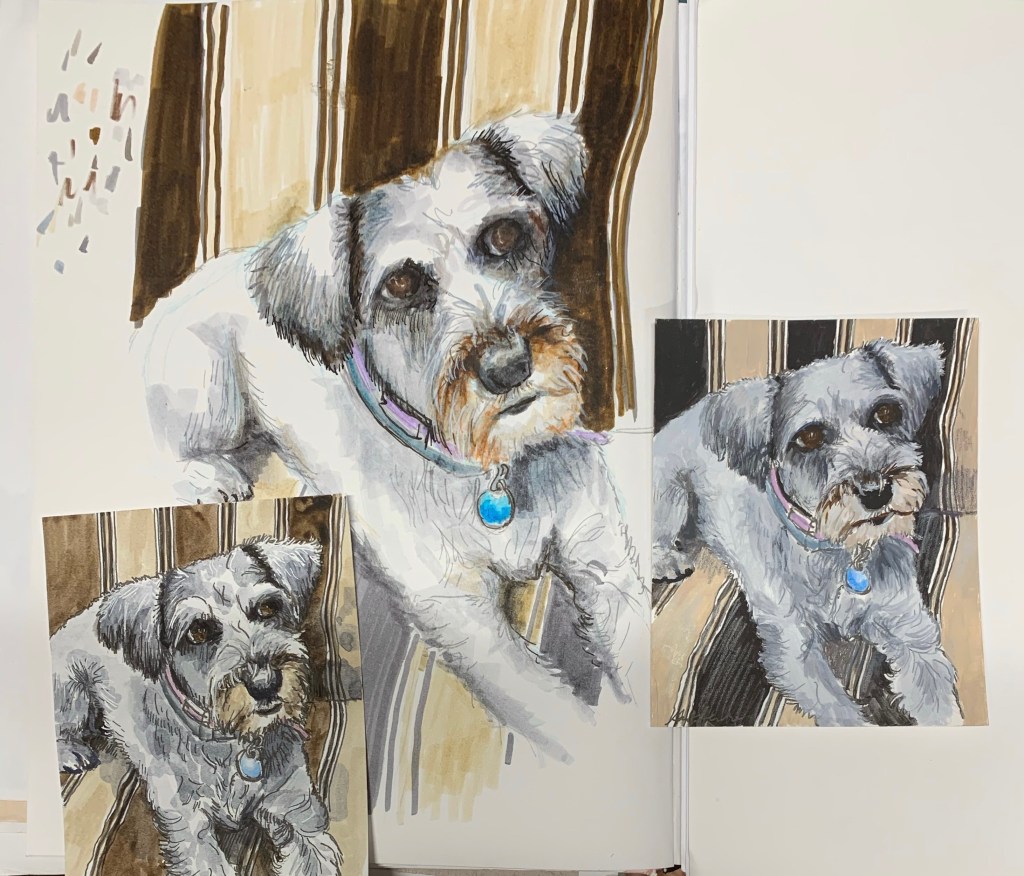 These pet portraits are lovely, Gina! All the mediums work well…if I had to pick a favourite, I think it would the ink and watercolour. 🙂