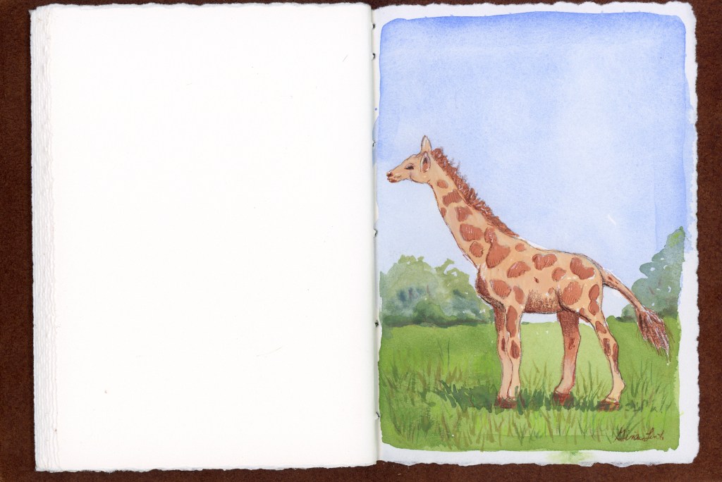 This is the whole sketchbook spread. I don’t use the opposing page to keep each sketch clean and undamaged. This is a a sketchbook/journal that I bound from a kit from Innovative Journaling. The paper is Arches Text wove and it is very soft and has a nice texture.