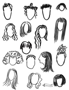 Assignment – hair styles. I just kept it basic but I still wound up with 4 sketchbook pages of them….