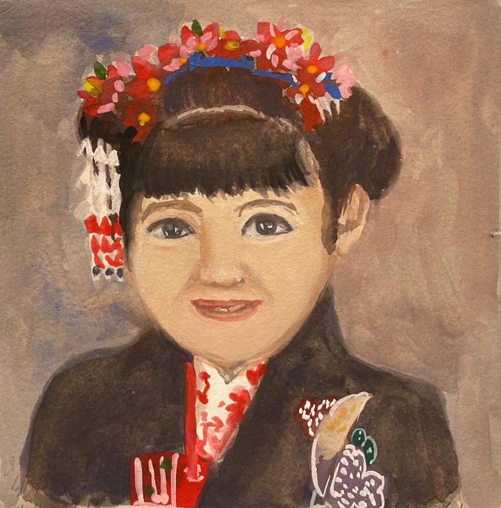 Today’s prompt is “culture different from my own” and another artist on Sktchy, Naomi Draw, posted a photo of herself when she was younger, in traditional costume. I chose her photo as a reference but took a little artistic license with the features.
