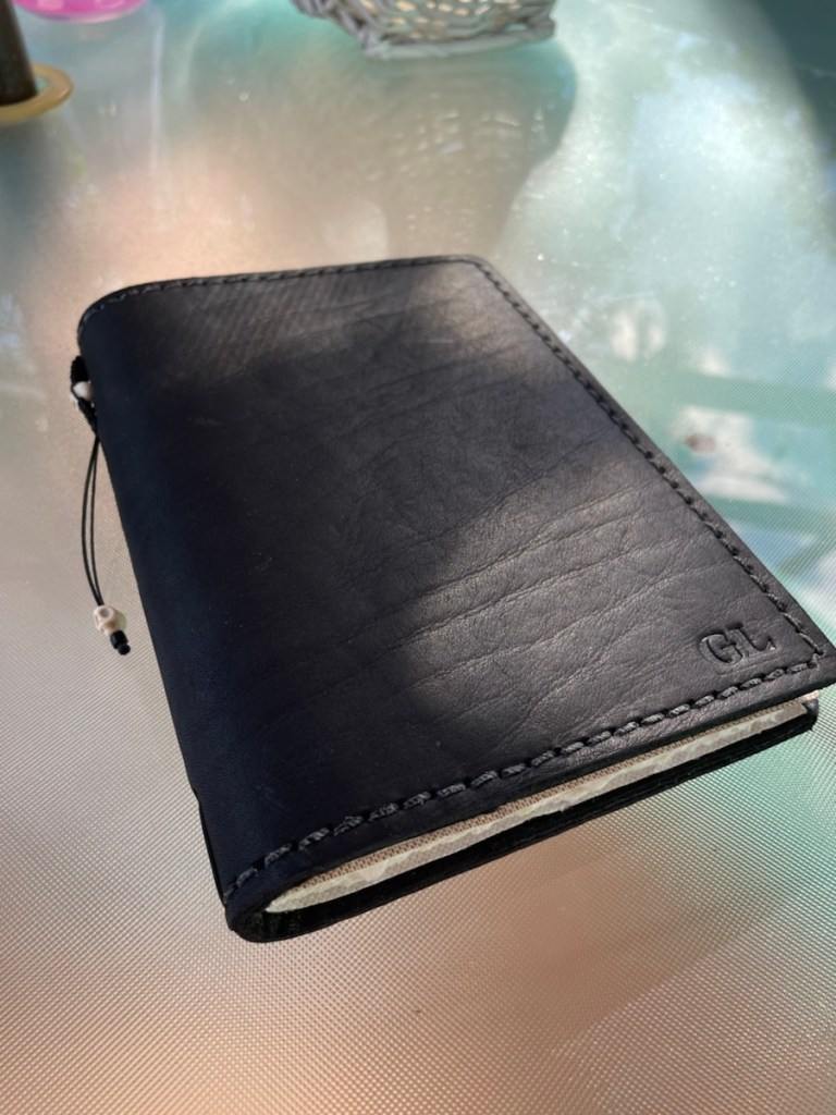 This is another sketch in my “skull” sketchbook. I love this refillable journal. It’s black Italian leather and it was made by Innovative Journaling. It comes with two refills of Arches Text Wove paper. The nice thing about this refillable journal is that I can use the paper that comes with it, or make my own refill from paper that I choose. I love the black leather with skull beads. Perfect for my Halloween themed sketches.