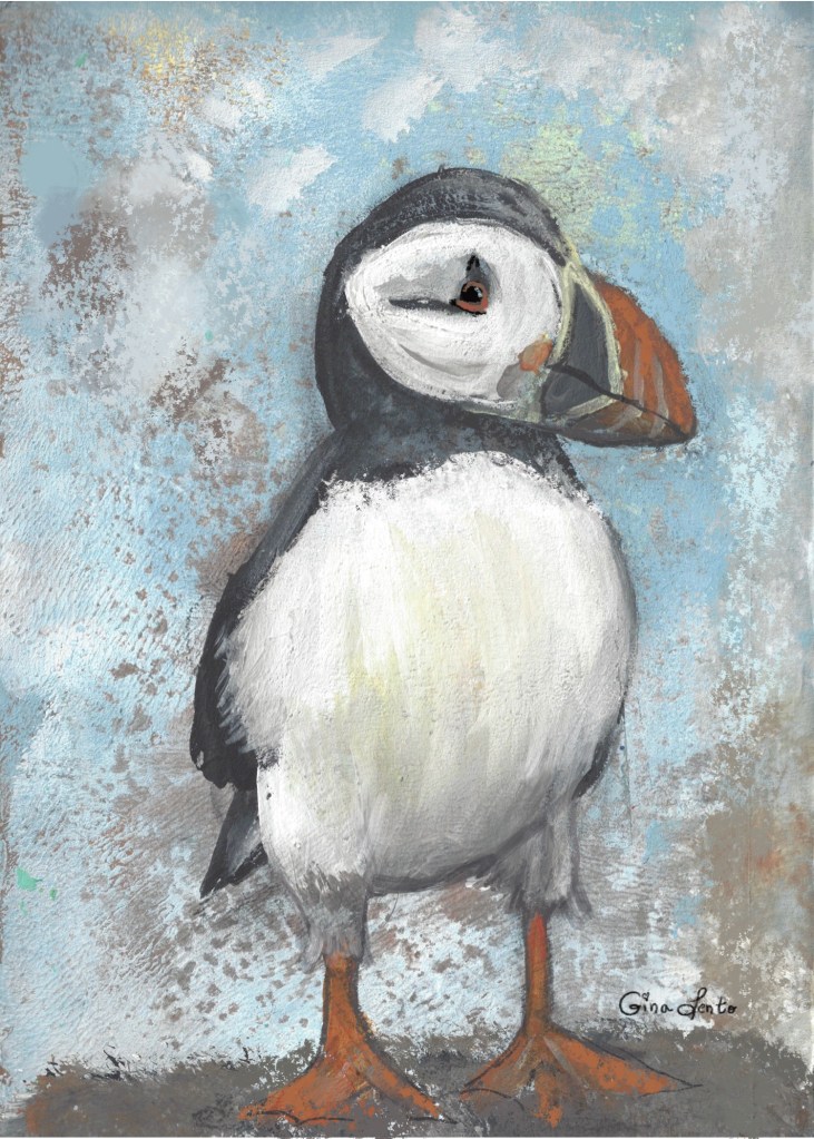 This prompt was easy because I made a pamphlet book for my grandkids a few years ago that was about Arctic animals, puffins being one of them. I have not shown this book outside the family so this is the first time that I can remember actually posting one of the illustrations on my blog and social media. The book has a wintery Arctic feel to it and I really enjoyed doing this book. I should probably pull the entire book into Procreate and update it submit it to publishers. I did it to create awareness of the animals that would be negatively impacted by a warming planet.
