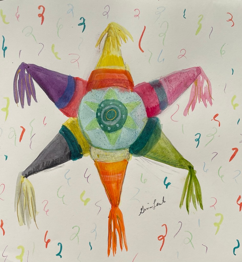 The prompt for today is piñata. I chose to do this one in my sketchbook instead of the iPad. I winged this one with materials that I had on hand and used what I had in my sketch bag. Sometimes having your options limited is a good thing.