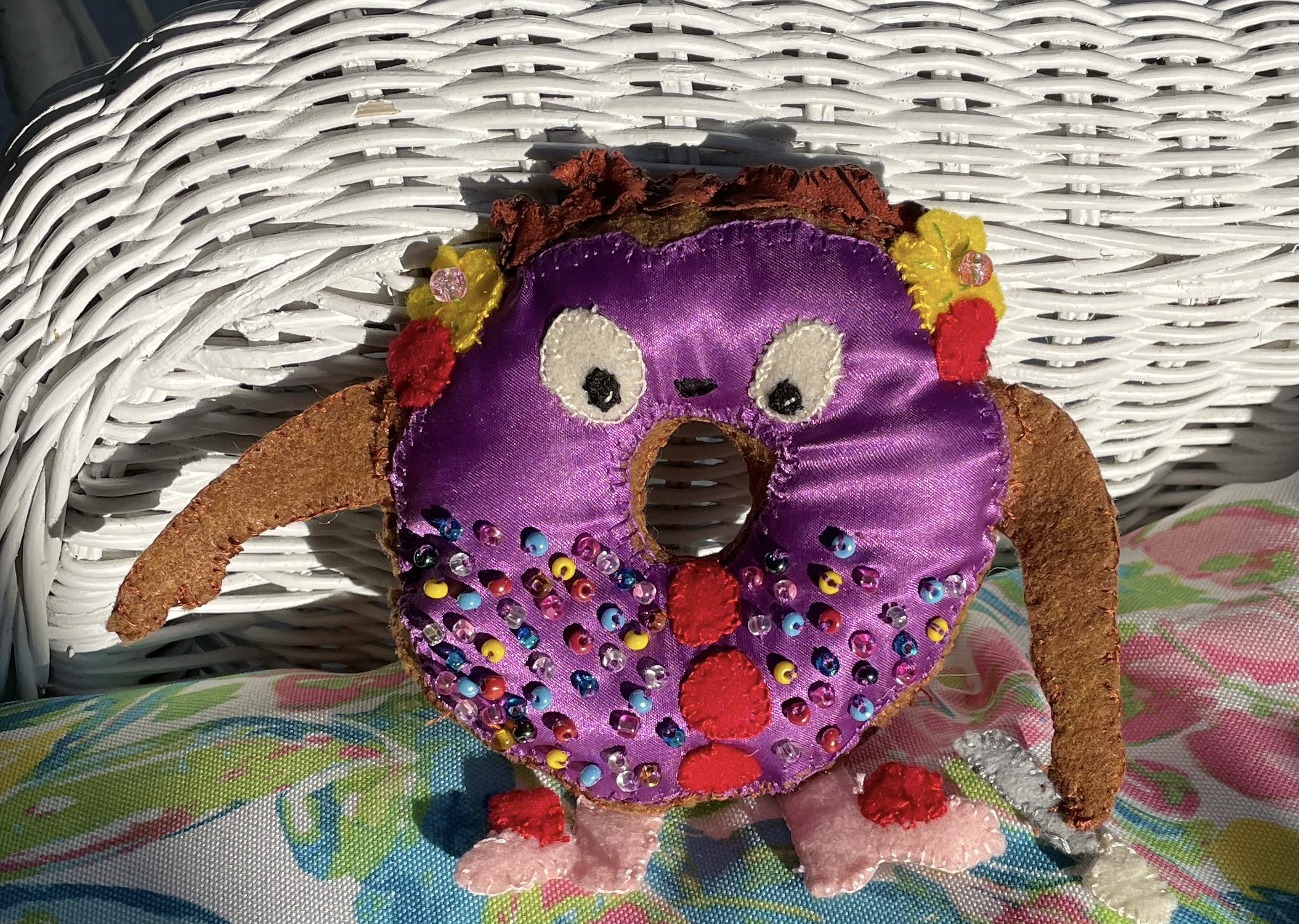 Here is the stuffed version of my Coco Moloko using what I had around my studio. I thought about going to buy glittery fabric for the frosting, or even just getting another color for the frosting and a different pink for the feet, but in the end I just used what I had in the studio. There are some things I would tweak if I made another one of these. Plus I would explore how to make other flavors. LOL